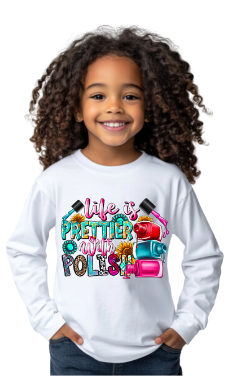 Enhance your child's style with Beautiful Nails life is prettier nail polish shirt! Perfect for little ones and nail technicians alike, this shirt showcases their love for nails in a fun and fashionable way.